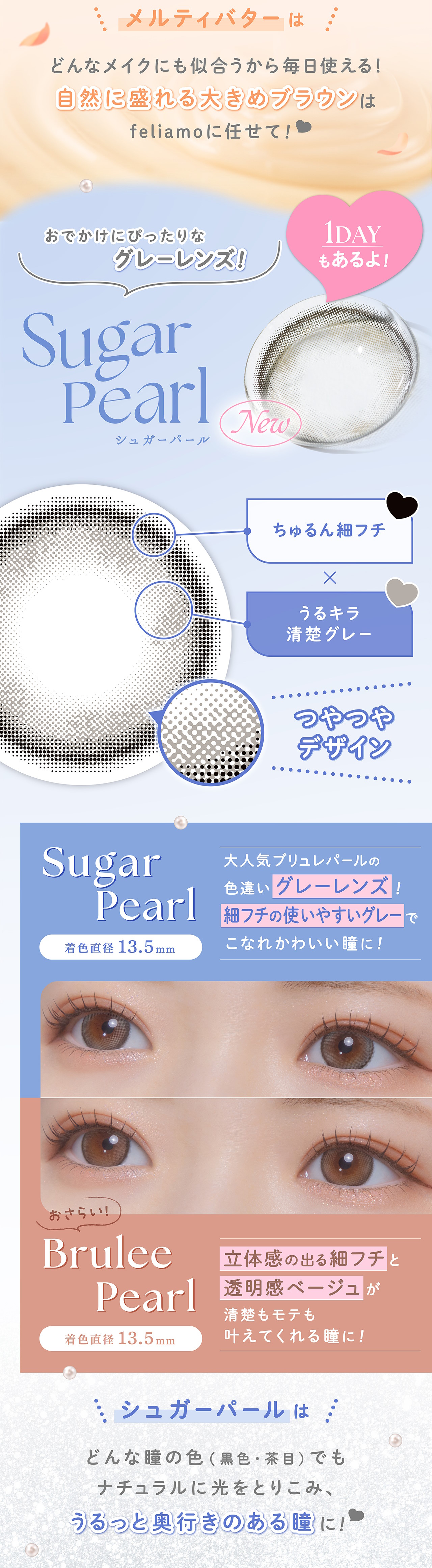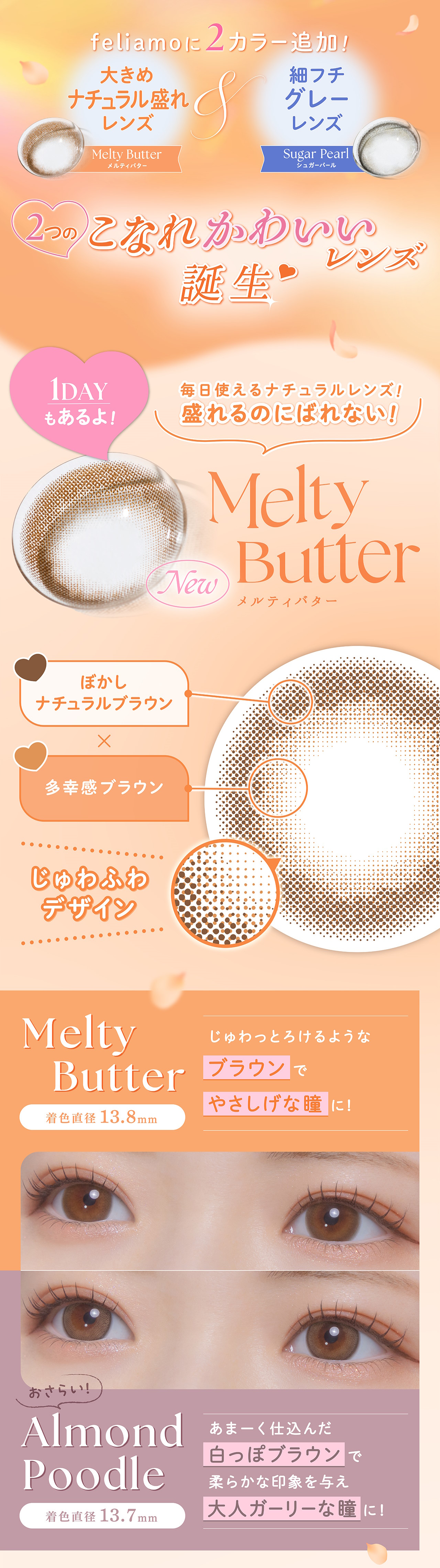 あまーく仕込んだホワイトとブラウンカラーが柔らかい盛れ感を与えてくれるレンズ。
