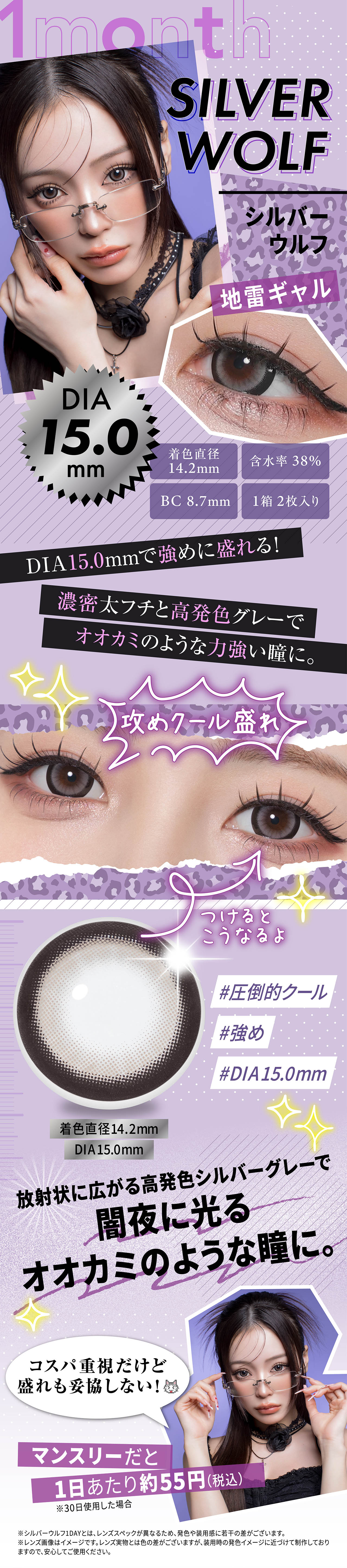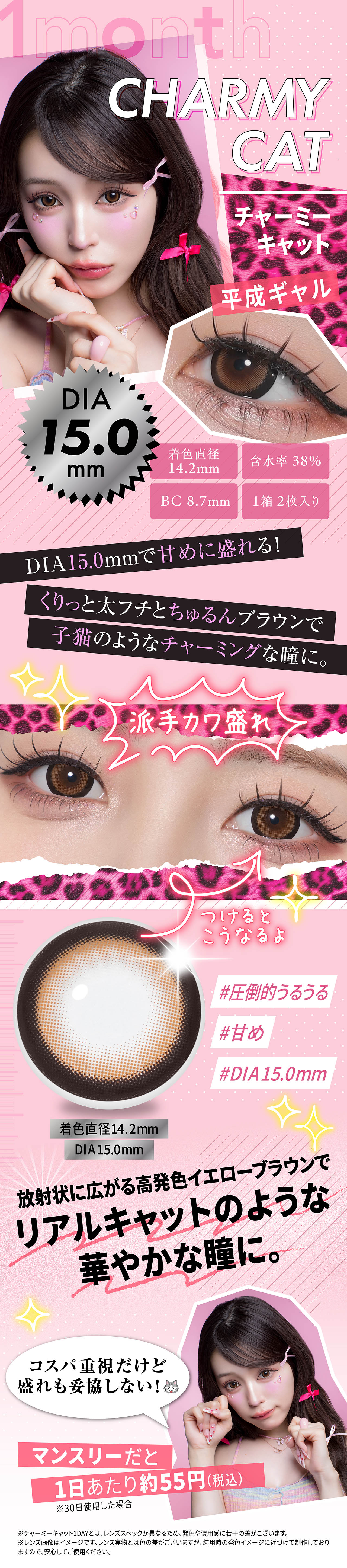 DIA 15.0mmと14.5mmの2サイズ展開で盛れ度が選べ、全ギャルに刺さる"強め"にも"甘め"にも盛れるカラーラインナップ